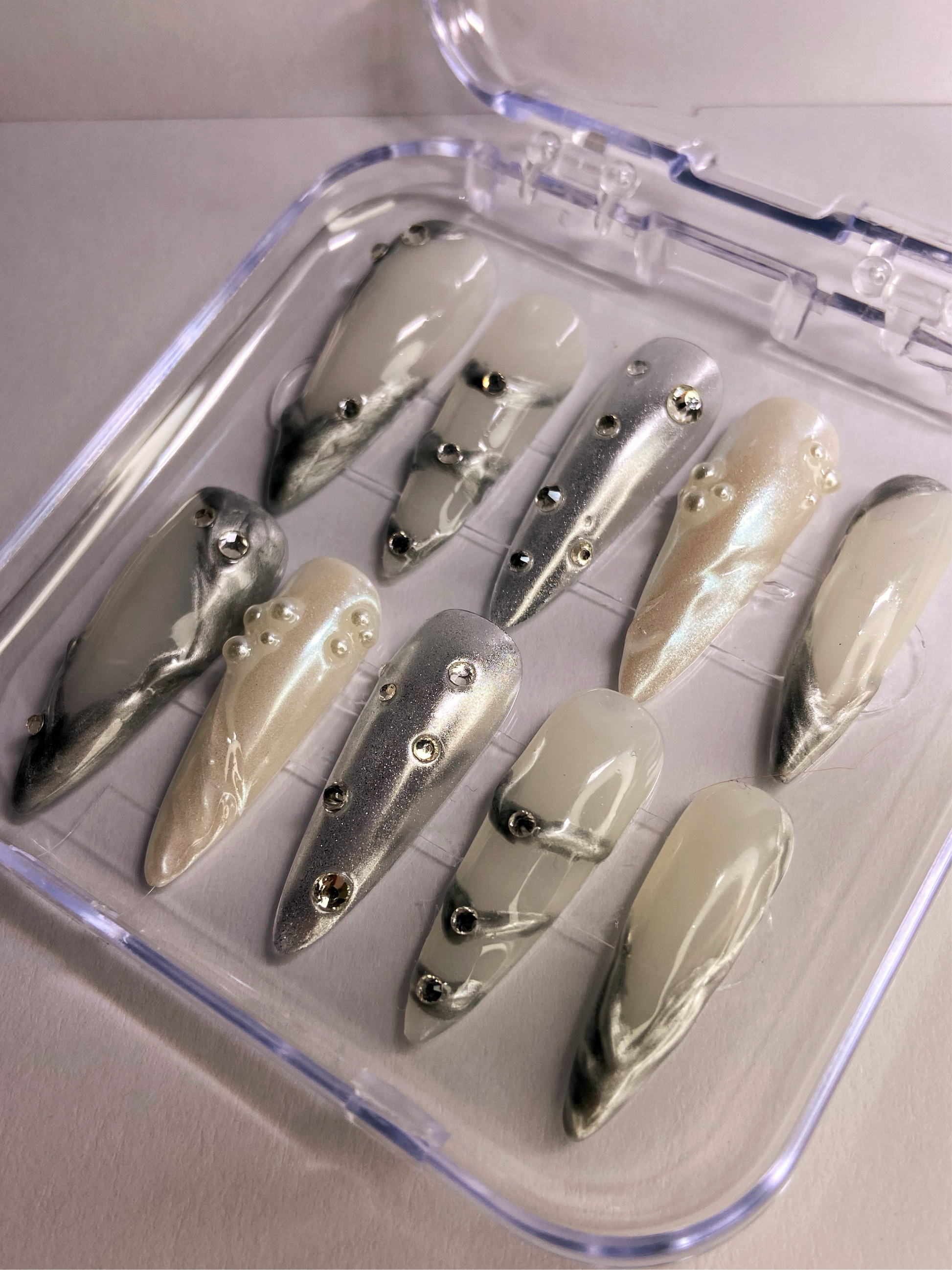 "Obtenez une manucure élégante et sophistiquée avec le set Silver🩶! Parfait pour un look chic et tendance !